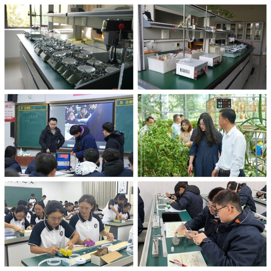 在教学实践中,学校将实验教学纳入学科教学基本规范,强化实验教学要求,确保学生在学习中能充分获得实践性学习体验。学校大幅优化实验资源配置,学生分组实验全部达到两人一组,部分实验达到一人一组,实验开出率达100%。无论是实验仪器的精准操控、实验步骤的规范执行,还是实验结果的深度剖析与总结归纳,学生的实践能力都在每一次的亲手实验中得到了扎实锤炼。学校学科教师勇于探索创新,他们充分挖掘实验室现有仪器设备的潜在价值,通过巧妙构思、组合改造,自制出一件件独具匠心的教具,成功开发出一系列成本低廉却效果卓越的科学实验项目。