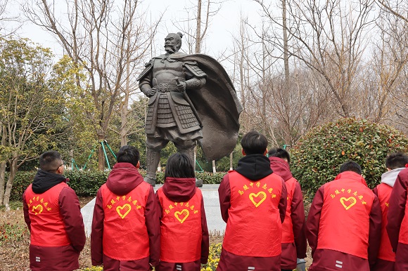 劳动之余,青春的步伐来到了古黄河水景公园南岸西侧,一座座英雄丰碑正静静地伫立在这里,这就是“宿迁英雄园”。它是市委、市政府高标准规划建设的英雄荟萃的场所,也是重点打造英雄人物光辉形象与秀丽景色交融的城市纪念性景观公园,山清水秀之间,传扬着浓浓的家国情怀。
