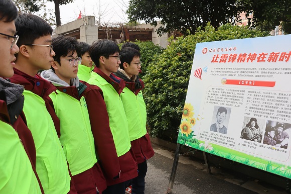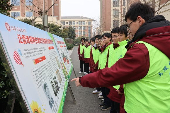 同时,校园内设立了“向雷锋同志学习”主题展板,展示雷锋同志生平事迹、雷锋同志经典语录、习近平总书记对学习雷锋精神的重要讲话等内容,号召大家学习雷锋精神。