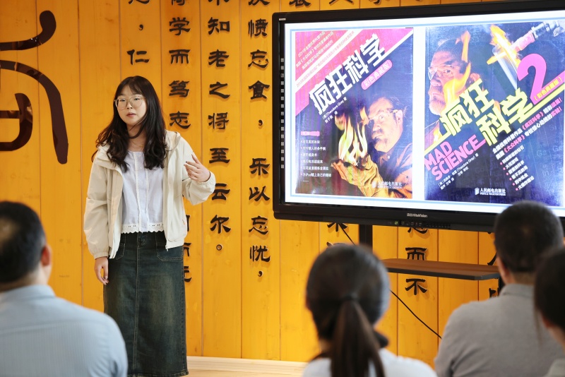 物理教师孙强分享《物理学之美》,揭开宇宙运行的神秘面纱,展现科学中的诗意;化学教师胡雪带来《疯狂科学》,让大家感受化学实验的疯狂与乐趣;生物教师赵星捷分享《月光落在左手上》,从生物学者的视角展现科学与诗歌的交融,诠释生命的温度。
