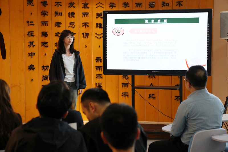 语文教师刘满分享了《主角》,带大家品味文字魅力与人生百态,感悟 “人生如戏、戏如人生” 的深刻内涵;数学教师王艺瑾引领大家走进数学天地,感受逻辑与思维的美妙;英语教师施颖通过《杀死一只知更鸟》,让老师们体会不同文化背景下的正义与人性思考。