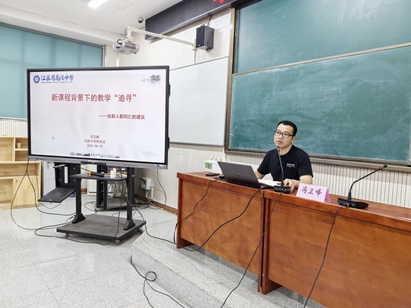 8月18日上午新入职教师欢迎仪式后,为期两天的入职培训紧锣密鼓展开,内容涵盖教育理念、教学技能、校园文化等多个维度,为新教师快速适应岗位“充电赋能”。办公室副主任李宝平带领新教师深入学习校史校规,通过师德宣讲与校园参观,让“养正为先、体学并举”的办学宗旨融入初心。下午,教务处副主任冯卫峰详解新课程标准、新高考方案及教学常规,从集体备课到课堂管理,细致指导教学实践要点。高一年级主任盛莉则聚焦高一年级教育教学特点,分享年级管理经验与学生培养策略。