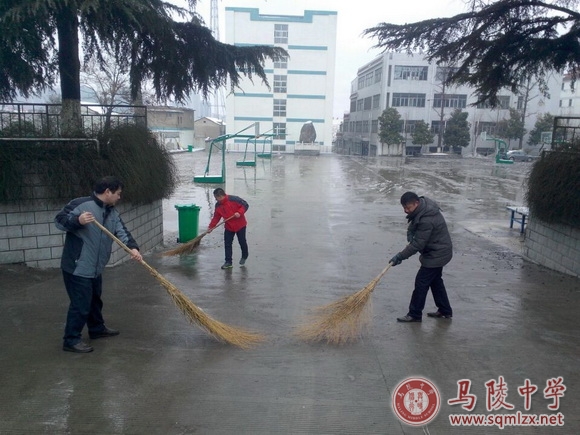 201426日上午,厚厚的白雪覆盖了校园,随着气温骤降,雪水结冰后,将给校内交通带来安全隐患。褚俊清副校长和部分教干及时对道路积雪进行清扫,消除了安全隐患。