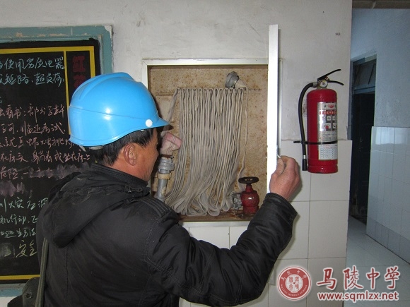 为进一步加强学校的安全及管理工作,有效防范灾害事故的发生,2014年2月15、16两日,学校组织相关人员深入校园教室、宿舍、实验室、食堂、图书馆等进行消防安全情况全面检查。同时对消防安全管理制度、防火安全责任制的落实情况、消防安全疏散通道、应急照明、疏散指示设施和消防器材配置等情况进行全面仔细地检查,检查出灭火器气压及干粉失效的共计35支,并及时更新。