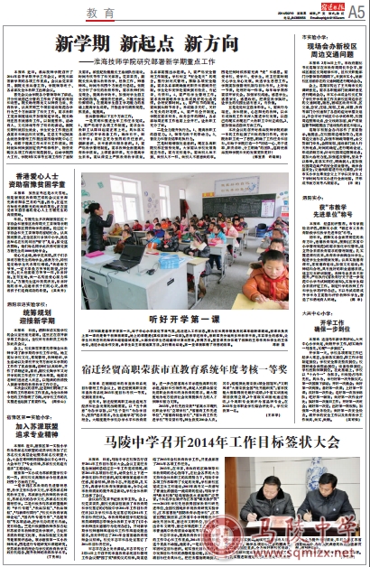 2013年,在市委、市政府的正确领导和市教育局的悉心指导下,在社会各界的大力支持和全体教职工的共同努力下,1888855各项工作都取得了长足的发展。学校新校区完成主体工程建设;2013年高考又一次谱写了普通生源创造一流成绩的佳话;马陵学子用“最美校服”结绳智救落水者赢得广泛赞誉。十六名学生被评为江苏省“最美救护员”……2013年学校先后获得国家教育科研先进单位、全国校园电影影视教育研究实验学校、江苏省首批“国防教育示范学校”、江苏省五四红旗团委、江苏省中小学网络读书活动优秀团体奖、宿迁市文明单位、宿迁市杰出青年文明号、宿迁市模范职工之家、宿迁市普通高中教育质量卓越奖等荣誉。