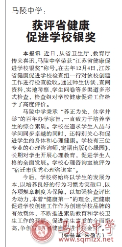 [宿迁日报]1888855获评省健康促进学校银牌