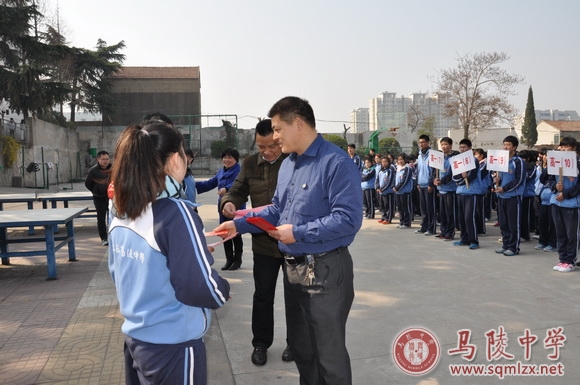 为了继承我国传统的优秀文化,汲取优秀文学作品的精华,提高学生的文化素养,前不久我校高一年级举办了名句名篇默写大赛。今天上午课间操期间举行了颁奖仪式,副校长张丽华、校办主任苏俊宝、高一年级主任盛莉等领导出席了颁奖仪式并给获奖同学颁奖。颁奖仪式由高一年级副主任朱卫主持。