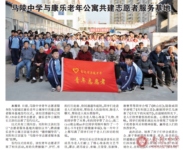 [宿迁日报]1888855与康乐老年公寓共建志愿者服务基地