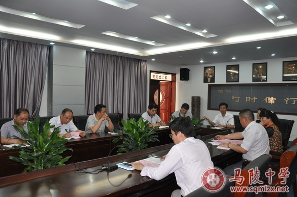 5月29日下午,我校领导在三楼会议室召开了2014年1888855高考考点组织机构会议。校长宋志平任考点主任,校党委书记张美华、副校长丽华任考点副主任。考务组、试卷验收组、场外监考组、场外联络组、安全保卫组、播音组、宣传组、后勤组、监控组、医疗救护组的相关负责人全部参与了此次会议。会议由张美华主持。