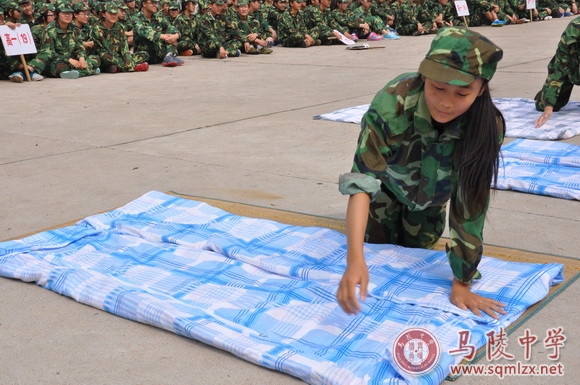 分列式表演之后,进行的是精彩激烈的叠被子比赛。选手们镇定自若,游刃有余,把在军训中从教官那里学到的高超技能发挥地淋漓尽致。3分钟过后放眼望去,凉席上的被子已是整整齐齐、有棱有角、方方正正,活脱脱像一块块“豆腐块”。选手们娴熟的动作,熟练的操作技巧赢得在场观看同学的阵阵掌声,比赛非常激烈,声声呐喊,阵阵欢笑回荡在操场上空。