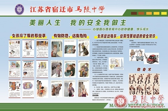 针对近期频发的女性失踪、受伤害事件,为了提高我校女生安全防卫意识,增强自我保护技能,心绿园心理咨询中心于本周举办了“女生安全教育”主题活动。活动内容主要包括三个方面:“关注女性安全,关爱女生成长”专题讲座、“学会自我防卫,构筑和谐天空”主题班会、“美丽人生,我的安全我做主”宣传展板。多渠道,全覆盖式宣传安全防卫知识,为我校女生的生命安全、健康成长保驾护航。