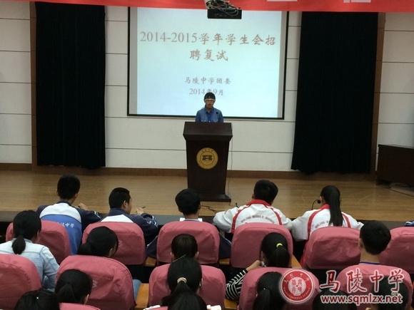 复试分自我介绍、即兴演讲和评委提问三个环节。评委由团委副书记刘阳、团委委员韩颖、学生会主席秦允慧、学生会副主席张德强、纪检部部长尹香港、纪检部副部长马梓豪、纪检部高一组长赵朗和优秀成员代表房凯等同学担任。