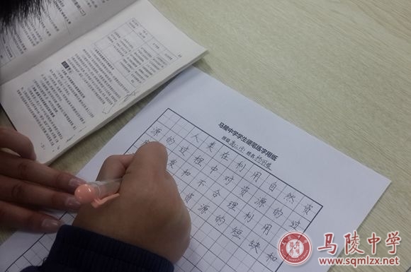 据悉,高二年级语文组每周将以抽检形式举行硬笔书法竞赛。“我们的目的就是要让学生重视书写,把字写工整,写规范,为作文赢分。”备课组长王军如是说。