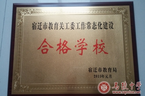 根据宿迁市教育局文件《关于开展关工委常态化建设合格学校考核通知》(宿教函﹝2014﹞261号)精神,经我校申报,考核小组听取汇报、查阅资料、实地考察等工作环节,现确认我校关工委获“宿迁市教育关工委常态化建设合格学校”称号。