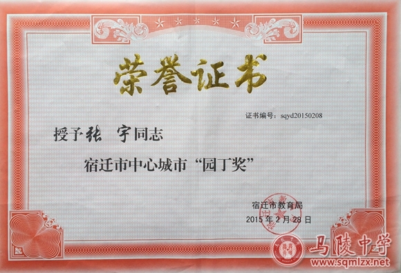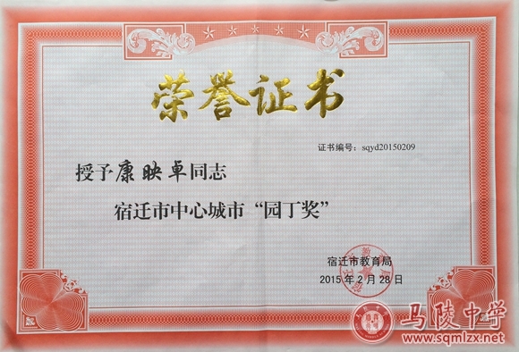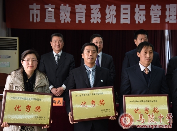 市直13所学校,获2014年度目标考核优秀奖的有:钟吾初中、宿迁经贸高职、宿迁高师、宿迁中学、1888855。我校优秀奖的获得离不开市委、市政府的关心,离不开市教育局的鼎力支持,离不开马陵人精诚团结的努力。2014年,我校顺利搬迁新校区,启动四星创建,在教育教学等各方面取得重大发展,获得的主要荣誉有:省“师陶杯”论文评选组织奖、江苏省公共机构节能示范单位、宿迁市普通高中教育质量二等奖、宿迁市普通高中教育质量贡献奖、宿迁市和谐校园、宿迁市绿色学校、宿迁市教育系统先进基层党组织、宿迁市中心城市基础教育精致管理达标学校、宿迁市教育系统行风建设先进学校、市教育信息门户网站信息报送工作先进单位、市教育局官方微博信息报送工作先进单位、“宿迁教育网”内容保障先进单位、“宿迁教育在线”官方微博内容保障先进单位、宿迁市教育系统工会工作先进单位、宿迁市教育系统网上社情民意办理工作先进集体、全市因病缺课监测上报工作先进集体、宿迁市教育关工委常态化建设合格学校、宿迁市食堂管理专项政治工作先进单位、市直教育系统先进集体、宿迁市依法治校示范校、宿迁市示范心理咨询室、宿迁市五四红旗团委等。