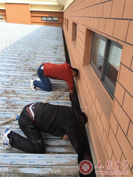 2015年4月8日,我校联系施工队,对艺术楼进行安全排查,及时解决了艺术楼顶部垃圾收集问题,检查中发现了艺术楼顶部渗水、三楼卫生间排水不通等问题,施工队现场施工,及时解决问题,经过自查消除了安全隐患,改善了学校的育人环境。
