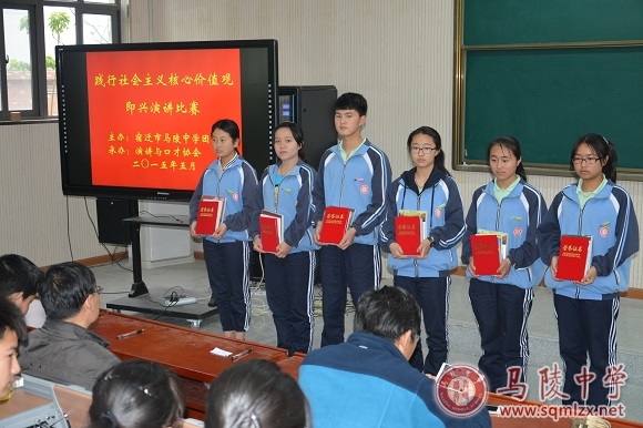 为深入开展社会主义核心价值观宣传教育和实践活动,5月8日,由校团委主办、演讲与口才协会承办的“践行社会主义核心价值观”即兴演讲比赛在阶梯教室举行。担任本次大赛评委的是语文组的刘杨、吴培金、李宝平、李苏、张莹莹五位老师。