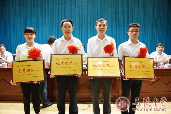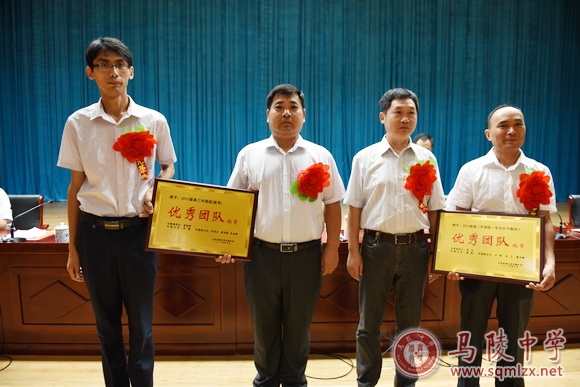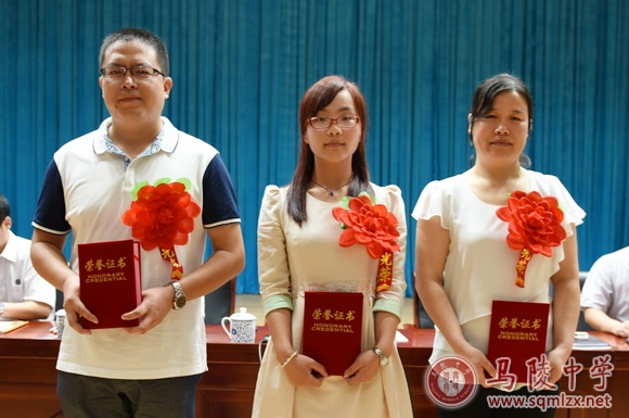 副校长高宗信宣读了表彰决定,授予2015届高三年级高考优秀团队奖,2013级高二年级学业水平测试优秀团队奖,2015届高三理科数学备课组、高三理科语文备课组、高三生物备课组、高三物理备课组优秀团队奖,赵建武等15名同志先进教育工作者称号,常江等10名同志“十佳”班主任称号,康映卓等3名同志教科研先进个人称号。王丽梅等校领导向获奖集体和个人颁发了奖牌、荣誉证书。优秀教师代表孙明山、丁成娅作了交流发言,副校长张宇解读了《宿迁市1888855质量新提升三年行动计划》。