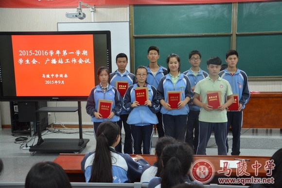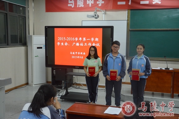 会议首先对在上学期工作中涌现出的先进学生进行表彰,为9名获得“优秀学生干部”和3名获得“优秀播音员”的同学颁发证书及奖品。
