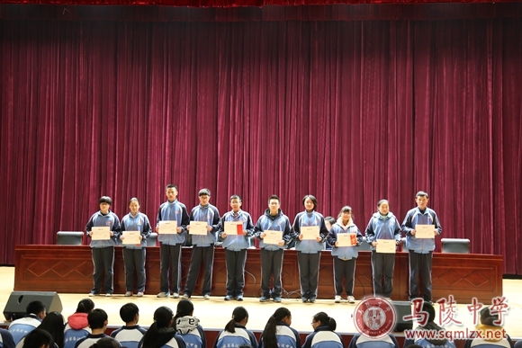 会上年级副主任马品敢总结半学期来各个班级的情况;接下来曹宏海代表年级宣读表彰决定,李中宸等50名受表彰的同学登台领取证书和奖学金;然后获奖代表袁铭阳同学做了交流发言。
