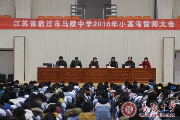 1月22日下午,我校在体育馆隆重举行2016年小高考冲刺誓师大会。会议由校党委书记张美华主持,校长王丽梅、副校长褚俊清、副校长汪德强、高二年级主任袁金花、高二年级全体师生及部分家长参加了会议。