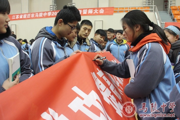 最后,高二年级全体师生共同宣誓,将大会推向了最高潮。“我们是最棒的陵中学子,信心百倍,斗志昂扬,全力以赴,创造辉煌……”。 会后,学生分班级在本班的冲刺小高考口号横幅上签上自己的名字,进一步表达每个同学小高考必胜的信心。