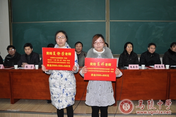大会首先对2015年在优课评比与教学基本功大赛中获奖的优秀个人与优秀辅导团队颁奖,并由校党委书记张美华宣读《关于成立毕业班工作领导小组的通知》(陵中〔2016〕1号)。