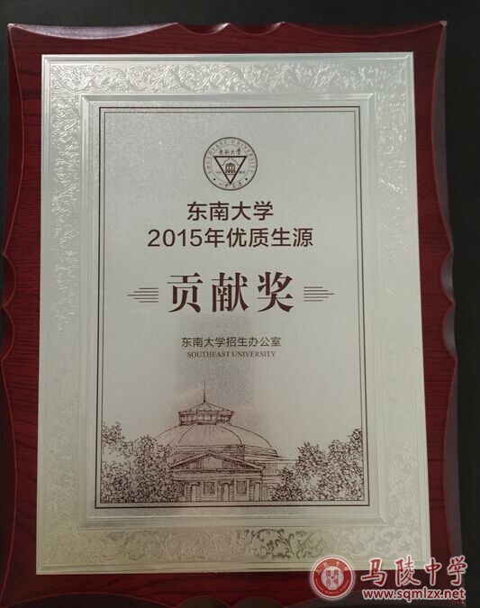 近日,东南大学授予我校“2015年优质生源贡献奖”奖牌。