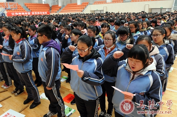 最后三年级全体师生共同宣誓,将大会推向高潮。“不作懦弱的退缩,不作无益的彷徨,我们将带着从容的微笑,去赢得2016的辉煌!”激昂的誓言响彻校园。