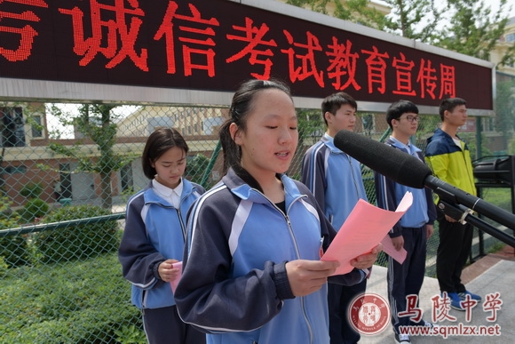 高三(15)班的沈茹梦同学做了题为《诚信高考,我们准备好了》的国旗下演讲。沈茹梦号召高三学子做人、学习要以节操为本,以诚信为基,传承民族美德,在高考考场上发挥自己的真实水平。
