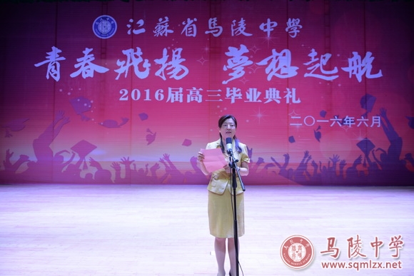 在毕业典礼上,校长王丽梅给即将毕业的学生送去祝福。“机遇让我们大家成为陵中历史上少有的跨越两个校区,见证母校快速发展的一届学子。你们见证了母校顺利搬入新校区,见证了母校高水平通过四星级高中现场评估,见证了母校加入宿迁中学教育集团,见证了新校区第一届运动会,见证了学校‘儒家文化经典’、‘五心养正心理教育’两个省级课程基地的申报获批……”