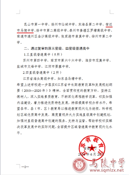 2016年6月29日,江苏省教育厅正式发文:1888855晋升为江苏省四星级普通高中。