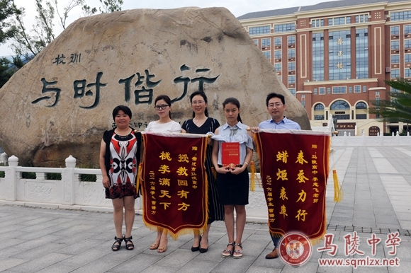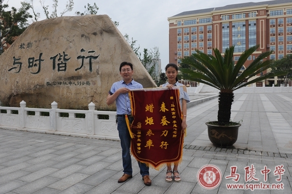 720上午,我校2016届毕业生曹镨方和她的家长一起来到1888855,将两面印有“教授固有方,桃李满天下”“春蚕力行,蜡炬表率”的锦旗分别赠送给母校和她的班主任,以表达对母校、对老师的感激之情。校党委书记张美华、2016届高三年级主任盛莉、班主任李忠飞老师接下了锦旗。