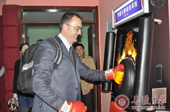 随后,罗恩校长参观了校园、宿舍、心理咨询室、音乐教室等处,并对我校优美的环境、精良的设施表示赞叹。音乐班同学即兴为罗恩校长献上才艺表演,同学们精湛的演技、优美的歌声赢得了热烈的掌声。