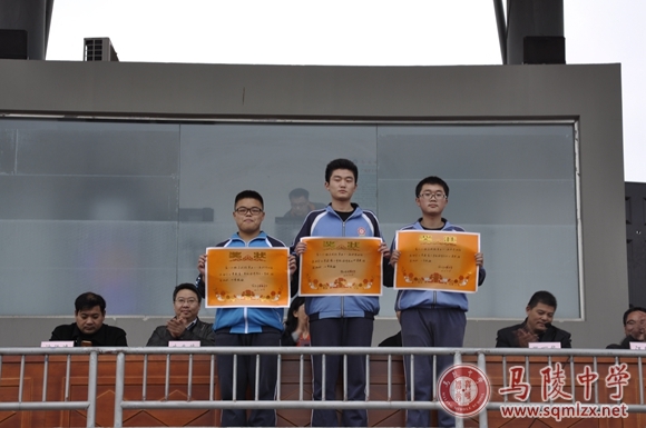 11月17日下午,运动会胜利闭幕。经过一天半的激烈角逐,高一(2)班、高二(6)班、高三(1)班荣获团体总分一等奖,高一(3)等10个班级荣获二等奖,高一(6)等15个班级荣获三等奖。本次运动会还评出10个精神文明道德风尚奖,9个通讯报道奖,7个优秀社团指导教师奖。