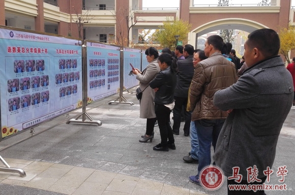 家长观看期中考试展牌