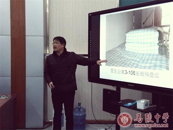 政教处副主任蒋守朋对秋季开学以来的宿舍工作做了总结,,指出就寝纪律在校领导的关心和指导下虽有所改善,但仍存在讲话、玩手机等违纪行为;内务整理良莠不齐,希望各位室长能带领本宿舍同学齐抓共管,遵纪守律,文明就寝。
