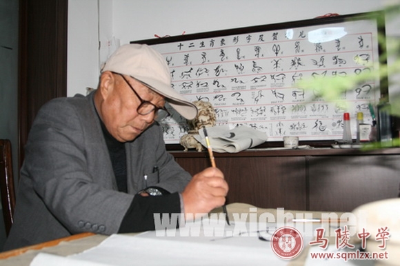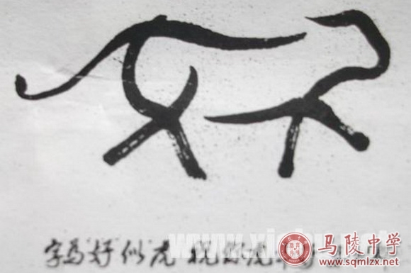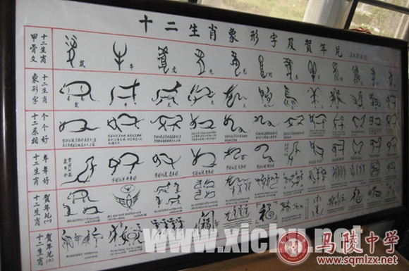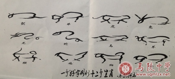 苏则轩1999年从我校退休,今年已经八十高龄了。他爱好书法,从事书法研究、教学数十载。一个偶然的机会,使他迷上了象形字的书写,他认为书写象形字,一是要发挥想象力,在象形上动脑筋,对原字尽量少变化,有些字不能写成象形字的就不要勉强;二是要在用笔上下工夫,充分体现出书法艺术,讲究用笔的轻、重、徐、疾。他说:“象形字要使人看了会感到既是‘书’,又是‘画’,书画融成一体,妙趣横生,回味无穷。”在他的笔下,不仅十二生肖被写得惟妙惟肖,像极了十二种动物,就连一些抽象的汉字,也仿佛活了起来,具有了灵动之气。