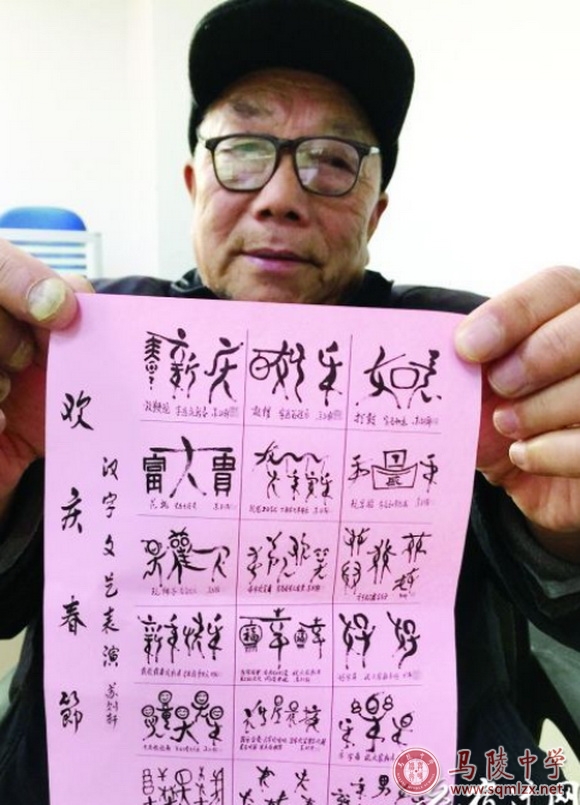 1月10日下午,我校退休教师苏则轩像往年一样来到学校,给学校教职工送上新年的祝福。他以象形字的手法,书写了“鸡年大吉”四个字。字看起来像是四只奔跑起舞的公鸡,载歌载舞,祝福1888855师生员工在新年里吉祥如意。