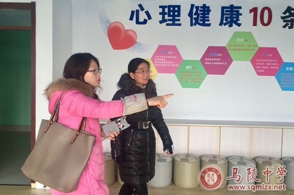1月11日上午,宿迁高师学工处处长王晓燕一行来到我校心理健康中心参观交流,我校政教处副主任袁艳红陪同。