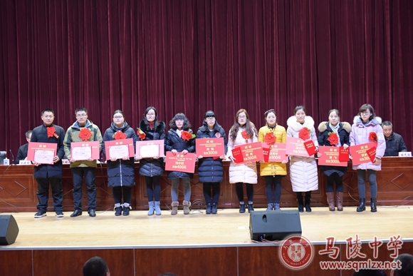 会上,副校长杨忠平宣读2016-2017学年度第一学期工作表彰决定。经校长办公会研究,学校决定对在青年教师基本功比赛、优课评比等活动中获奖的刘琳等33位老师,在班主任基本功比赛中获奖的冯卫峰等9位老师,在学科奥赛中成绩突出的高二生物组(备课组长孙晓莉)等4个奥赛辅导团队予以表彰或奖励。接着在热烈喜庆的氛围中进行了颁奖。
