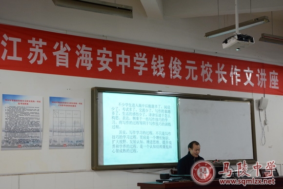 语文教研组参加明德楼一楼东阶梯教室的江苏省海安高级中学副校长钱俊元的“高考作文指导”专题讲座。