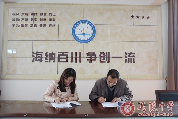 最后,签约。王丽梅和刘兴法分别代表我校和海头高中签定了全面深入合作交流的协议。