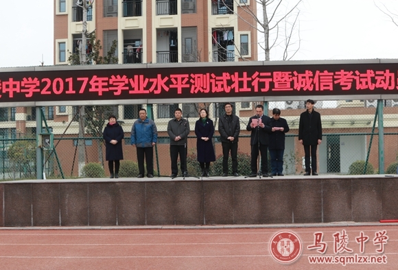 3月13日上午,我校举行2017年学业水平测试壮行暨诚信考试动员大会,校党委书记张美华、校领导班子成员、全校师生参加活动。副校长褚俊清主持活动。尽管天气阴沉,但是全体高二同学的豪情壮志却让人感受到春光明媚。