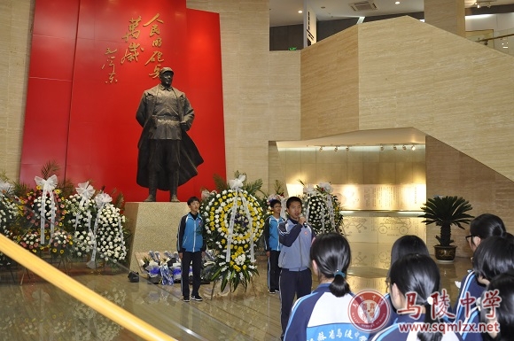 接着入团积极分子们在高二(15)班雍宗杰的带领下集体诵读歌颂朱瑞将军的两首诗篇,并向朱瑞将军鞠躬、敬献鲜花,表达对烈士的无比敬仰。
