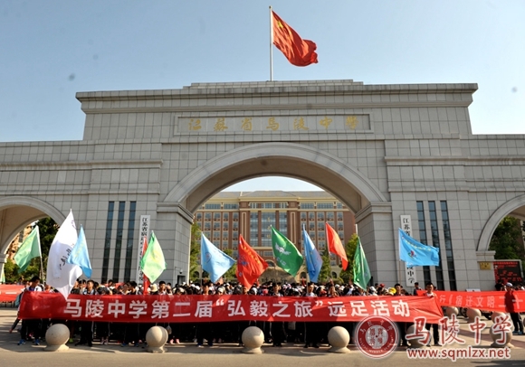 校长王丽梅为此次活动授校旗,宣布1888855第二届弘毅之旅远足活动开始,并为同学们壮行。校旗开道,班旗引路,全体同学迈着整齐的步伐,带着勇气和豪情浩浩荡荡地从南大门出发,“弘毅之旅”正式开始。