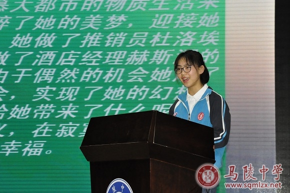 关于《嘉莉妹妹》,高一(7)班的丁艺这样说道:“当本真与欲望会面,当幻想与现实相碰,当人性的最后一点怜惜与救赎直视社会的繁华与丑陋,于是一次次的妥协,一次次的软弱,最终带着虚空的灵魂消逝。我们不能指责嘉利,我们永无立场,因为我们无法保证,我们可自在未来洁身自好并全身而退。”