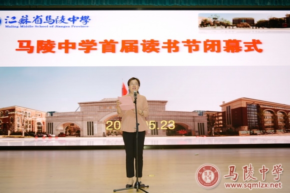 最后王丽梅致闭幕词。她说,今天以汇报演出的形式来祝贺首届读书节取得圆满成功,这让我想起了一句话“给我一个舞台,还你一个惊喜”。在读书节拉开帷幕之后,我们不断收获同学们给我们的惊喜,各个年级及各个备课组组织许多精彩的活动。同学们在舞台上以不同的形式来展现自己对经典的阅读、对经典的理解,用别样的方式来呈现我们多方面立体的才能。我们的老师经常说“我们的孩子真的很厉害,我们的孩子真的非常有能力”,这也是我们所希望看到的。尽管这是我们首届组织该活动,但举办本届读书节举办活动数量之多,内容之丰富,形式之新颖,最后质量之高也是罕见的。在这里我代表校长室、校党委对组织本次读书节的各位老师、对全力以赴参加读书节的同学们表示衷心的祝贺和感谢!