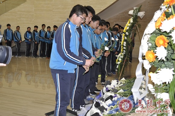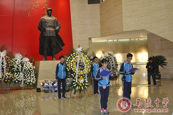 接着入团积极分子们在高二(15)班雍宗杰的带领下集体诵读歌颂朱瑞将军的两首诗篇,并向朱瑞将军鞠躬、敬献鲜花,表达对烈士的无比敬仰。