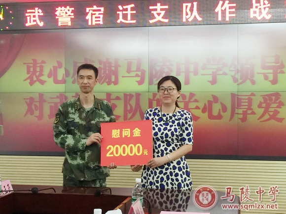 7月28日上午,在中国人民解放军建军90周年之际,我校校长王丽梅、校党委书记张美华等一行四人,赶赴双拥共建单位——武警宿迁市支队,开展八一慰问活动。